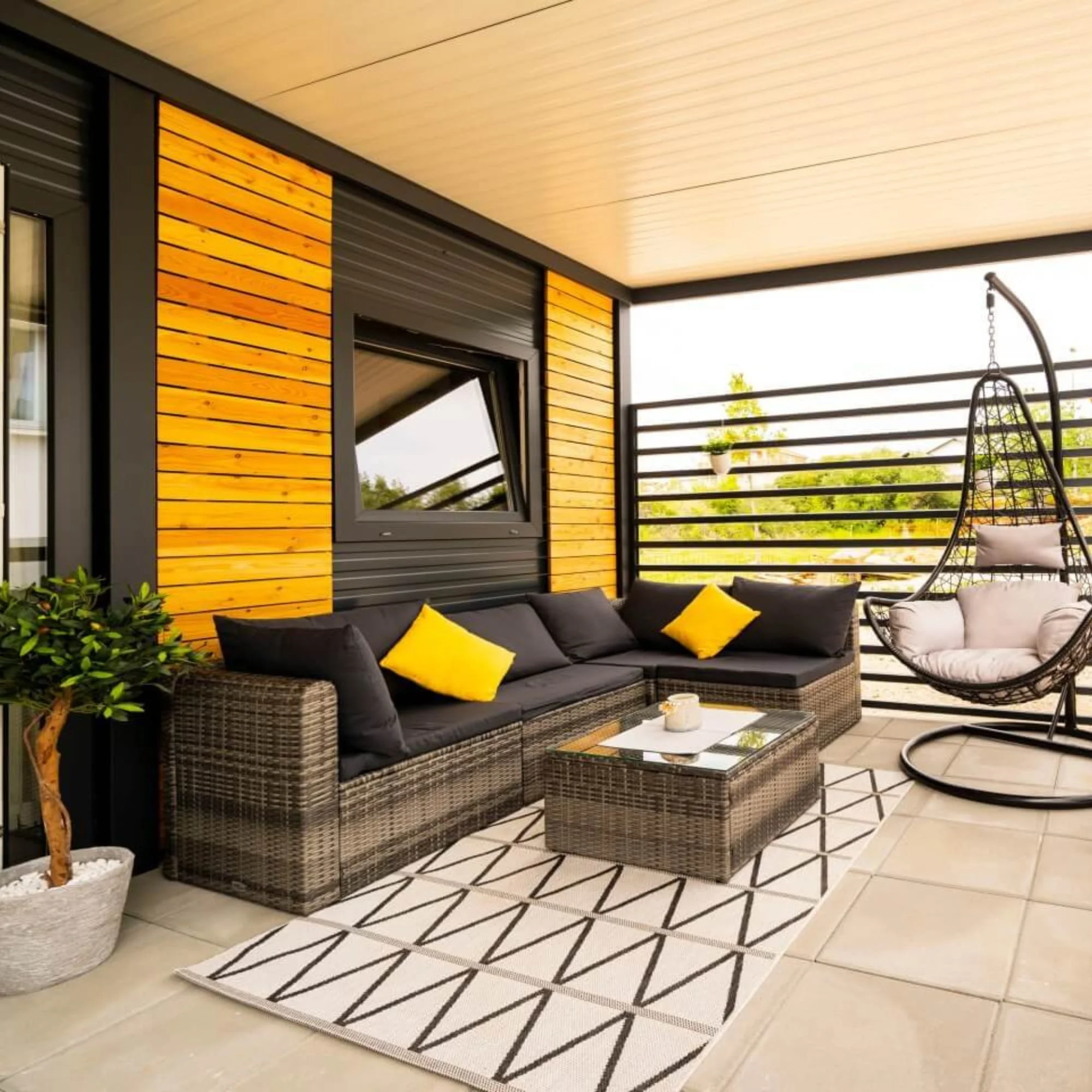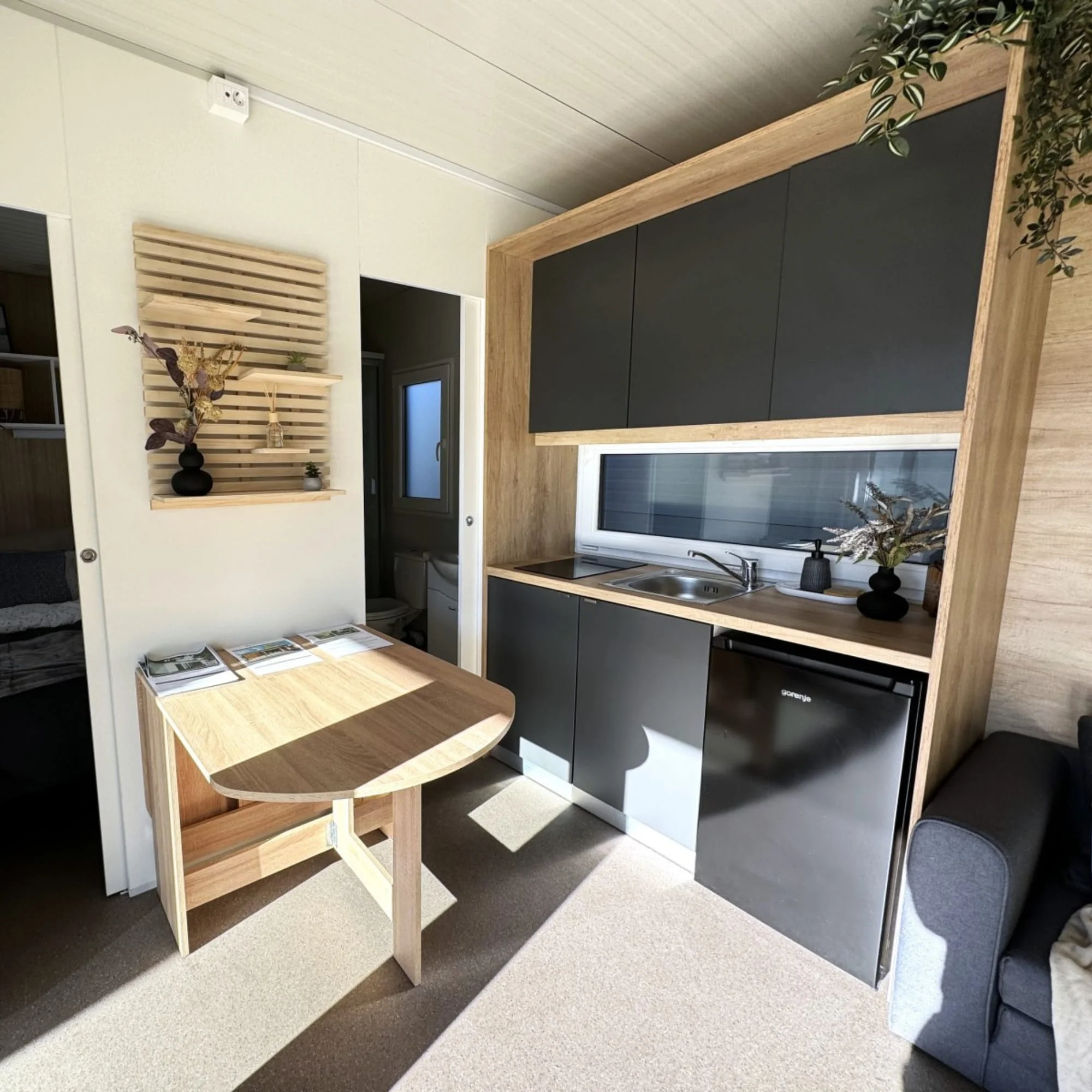 Domek Premium 9×4.2 to zupełnie inna liga. To propozycja dla inwestorów, którzy szukają najwyższej jakości wykonania, świetnej izolacji oraz wyposażenia klasy premium – zarówno pod wynajem luksusowy, jak i użytkowanie całoroczne.