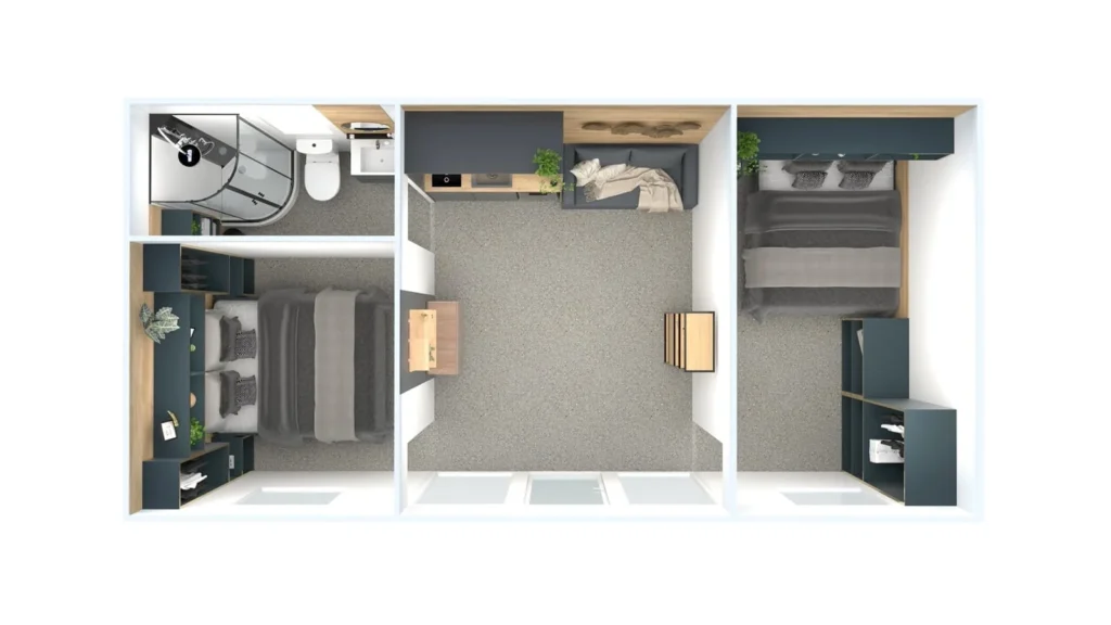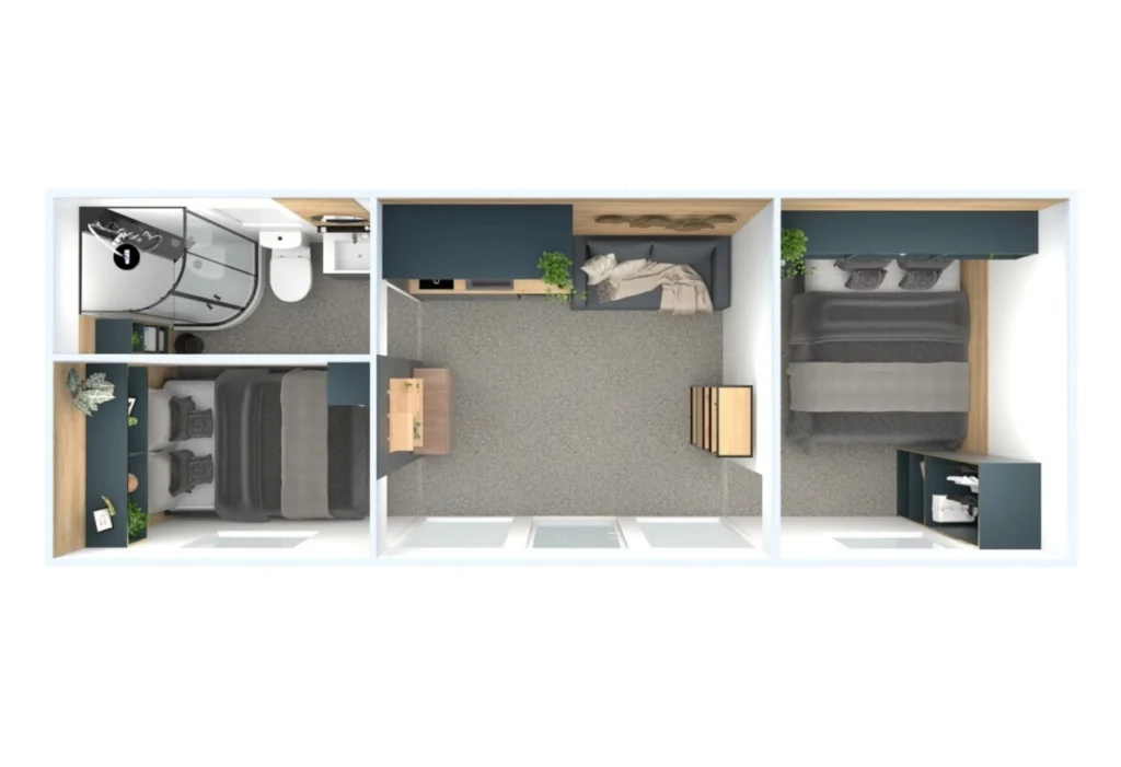 Domek Standard Plus 8×4 to rozwinięcie wersji Standard – dla inwestorów, którzy chcą zaoferować gościom więcej przestrzeni wewnątrz, zachowując ten sam, funkcjonalny układ.