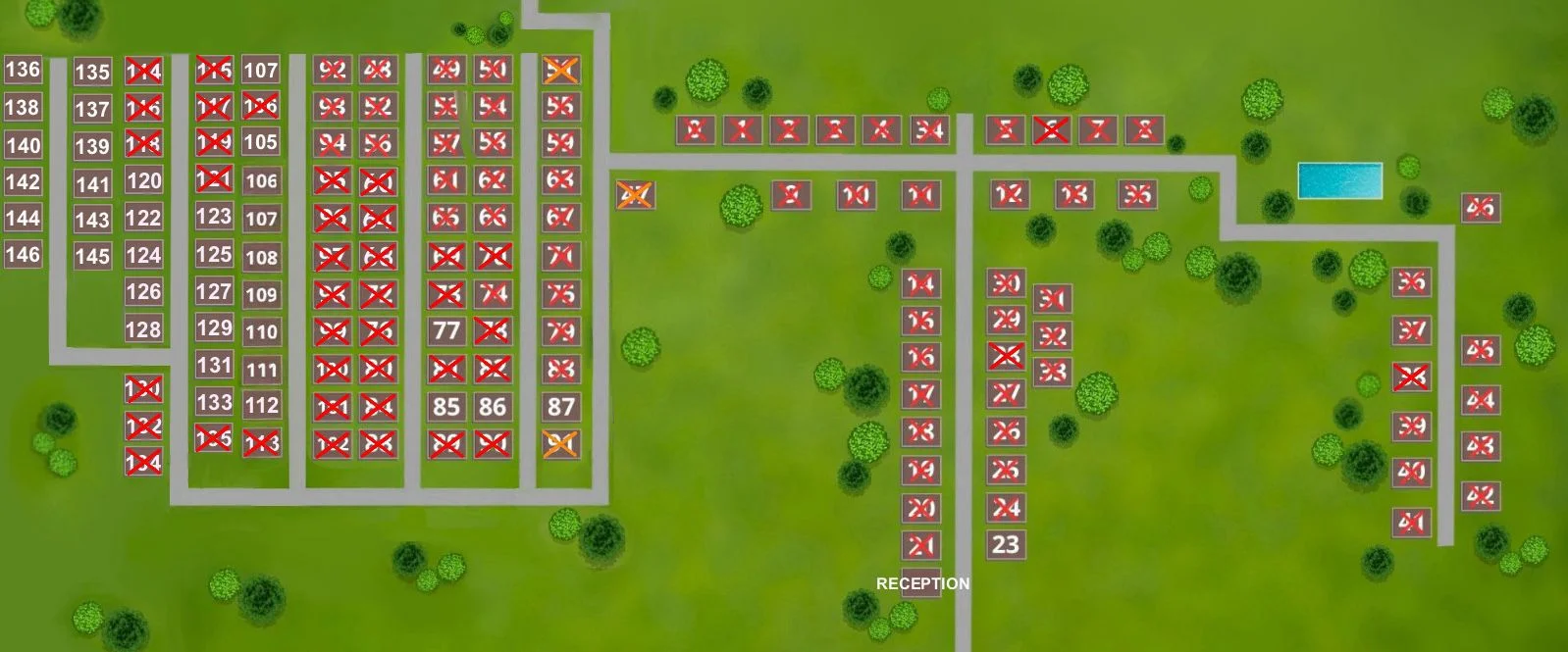 Poniżej prezentujemy aktualny układ działek przeznaczonych pod domki mobilne w wyjątkowej lokalizacji w Drage, Chorwacja. Każda działka posiada dostęp do niezbędnej infrastruktury i została zaplanowana z myślą o komforcie, prywatności oraz atrakcyjnym otoczeniu. Na mapie działki bez czerwonego X są aktualnie dostępne, natomiast te oznaczone czerwonym X zostały już sprzedane. Liczba dostępnych działek jest ograniczona, a rezerwacje realizowane są według kolejności zgłoszeń.